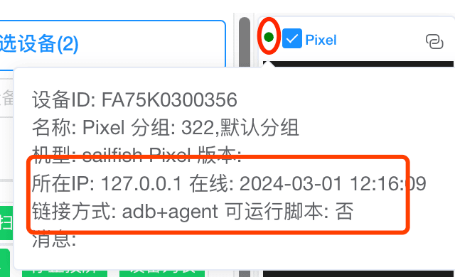 常见问题 - 链接成功后,设备的左上角小绿点会有详细的信息,直接点击